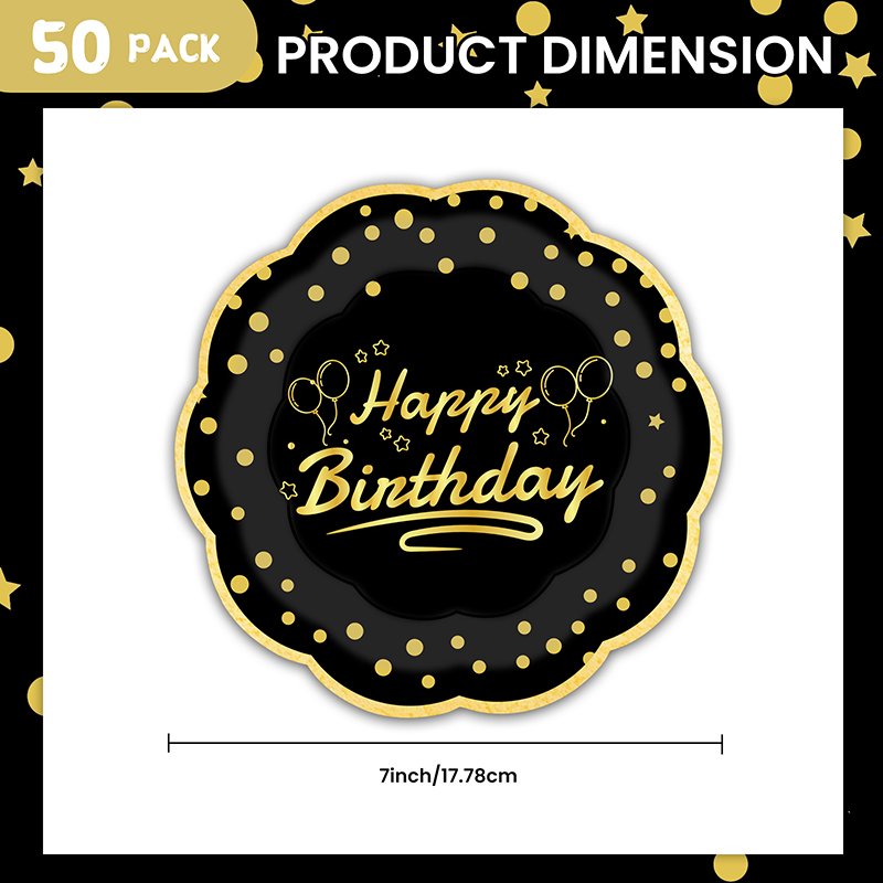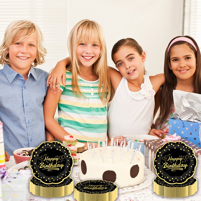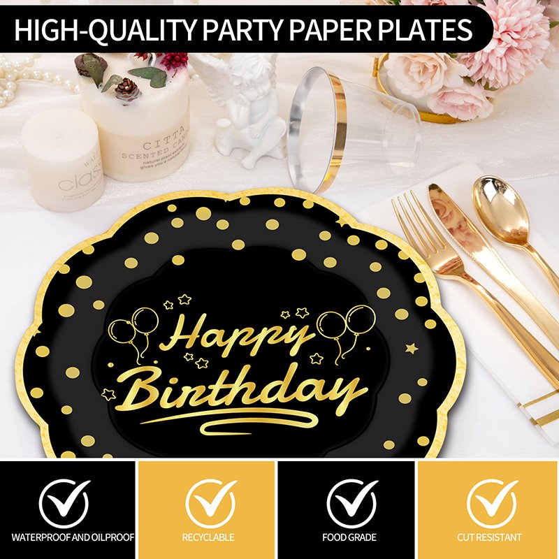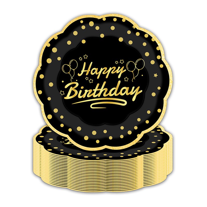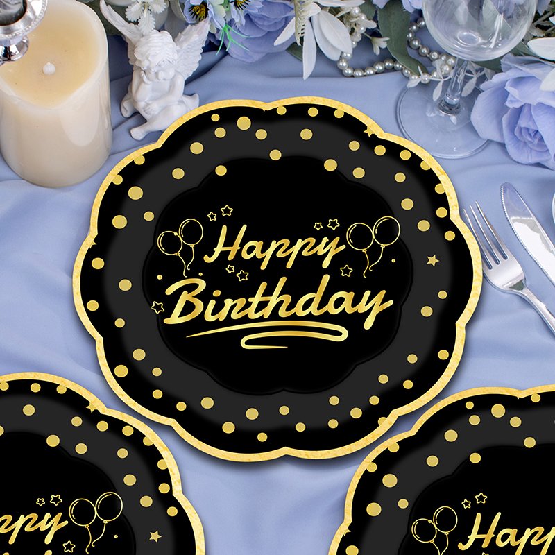 The birthday party plates offer a stylish and premium look for celebrations of all ages. Because they feature black hot-stamping with an elegant gold “Happy Birthday” imprint, these birthday party plates instantly elevate the table setting. As a result, they are a popular choice for birthday events, party planners, and retailers worldwide.