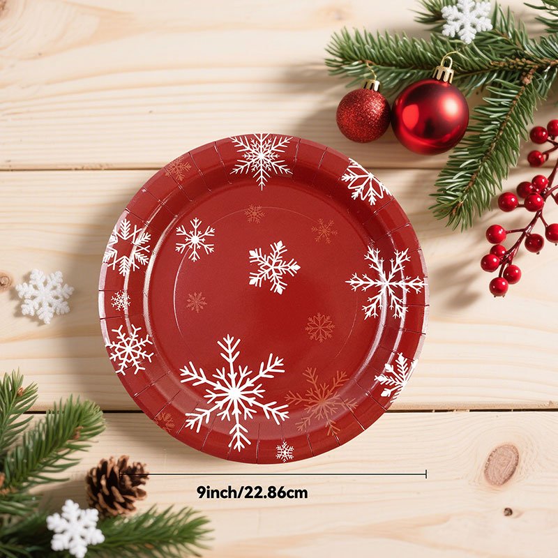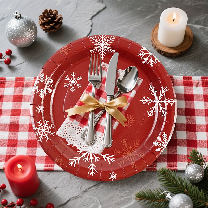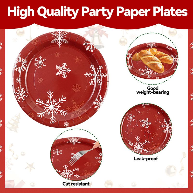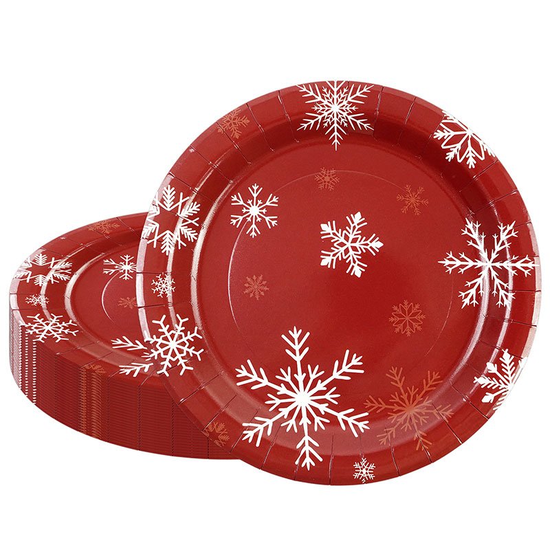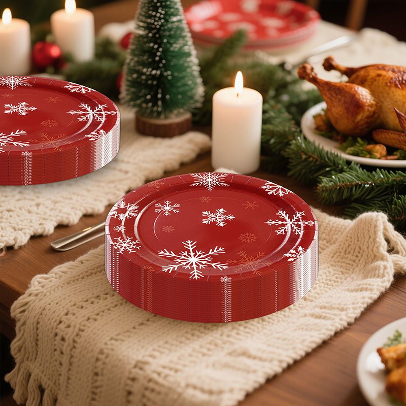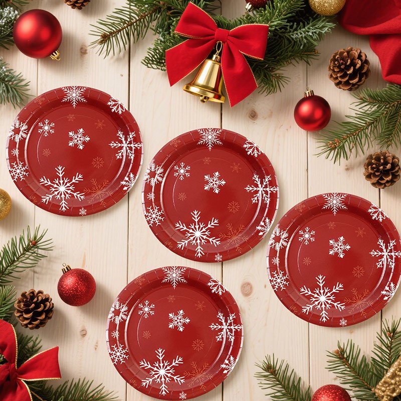 The Christmas paper plates bring a festive and elegant touch to winter celebrations. Because they feature classic red color with white snowflake patterns, these Christmas paper plates create a warm holiday atmosphere at parties, dinners, and seasonal gatherings. As a result, they are a must-have item for retailers and event planners during the Christmas season.
