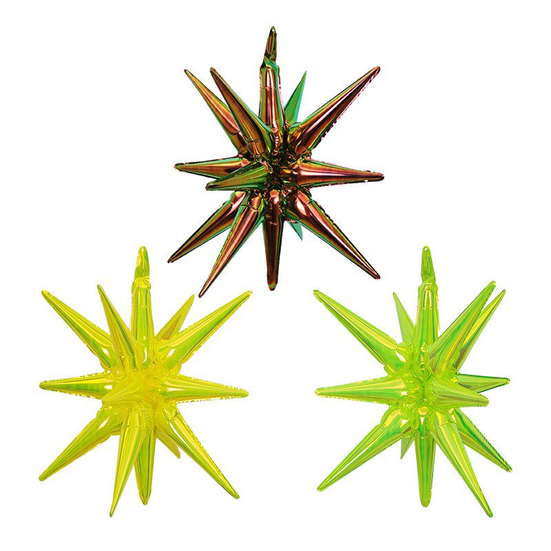 Exploding stars balloons are bright, colorful star-shaped foil balloons that create a bold visual effect at events. These exploding stars balloons are ideal for parties, concerts, festivals, and stage decoration because of their shining surface and one-piece design.
