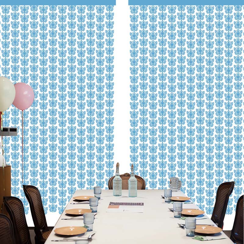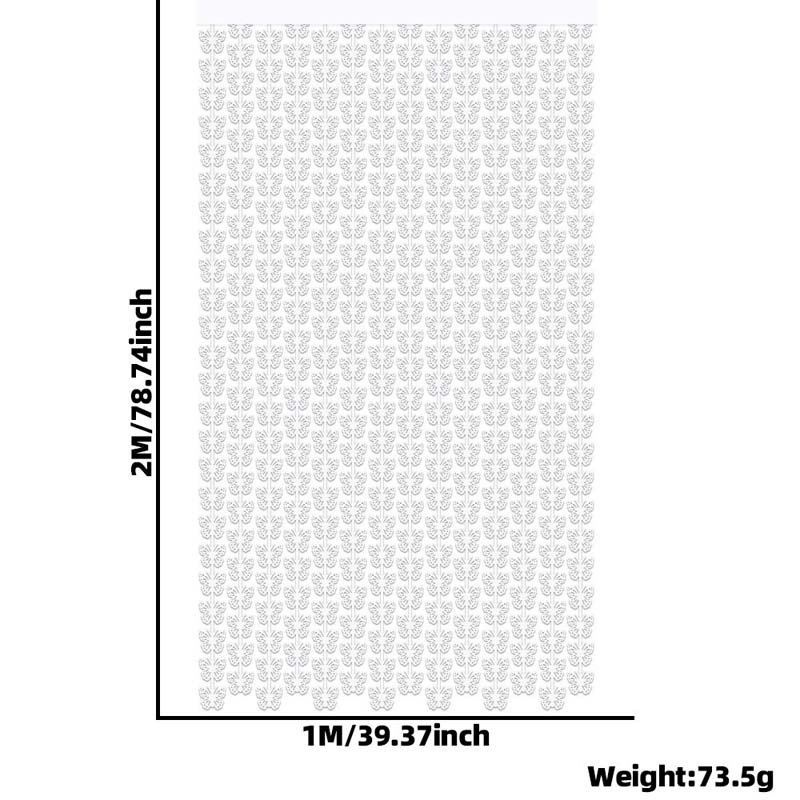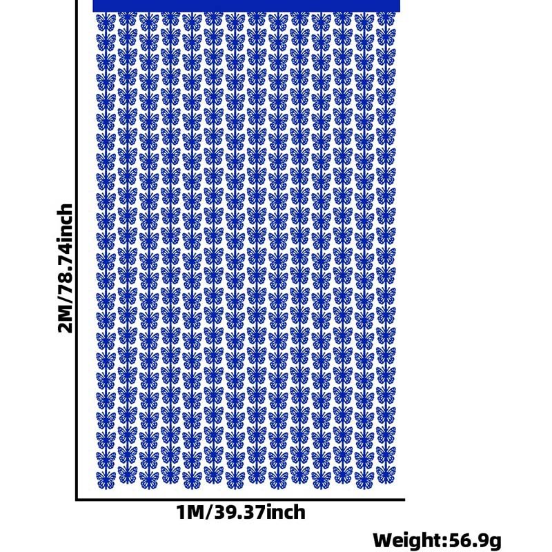 The curtain is made from lightweight decorative foil. Because of this, it hangs neatly and stays in place. Moreover, the hollow butterfly design adds depth while keeping the curtain airy. As a result, it looks elegant and feels easy to handle.