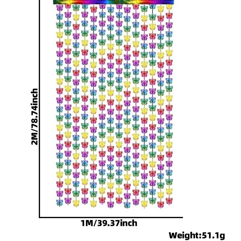 Hollow butterfly rain curtains are available in assorted colours and multiple sizes. This means they can fit many spaces and decoration styles. For example, smaller sizes work well for doors, while larger ones suit walls or stages. Also, check out the rainbow foil curtain.