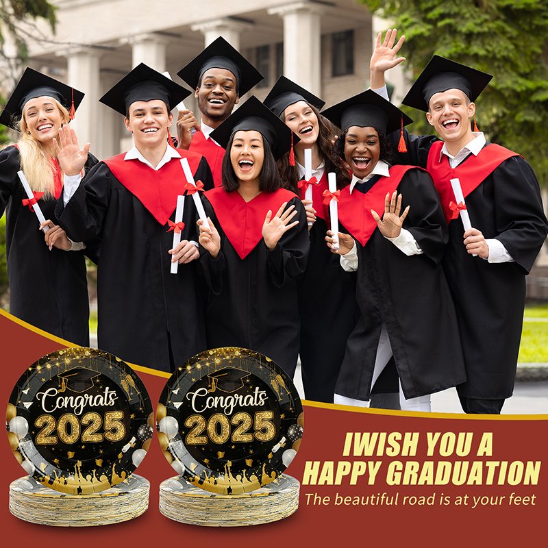 These Graduation Paper Plates are made from durable, food-grade paper material. They are suitable for serving cake, snacks, desserts, and light meals. In addition, the surface coating helps prevent minor leakage during short-term use.