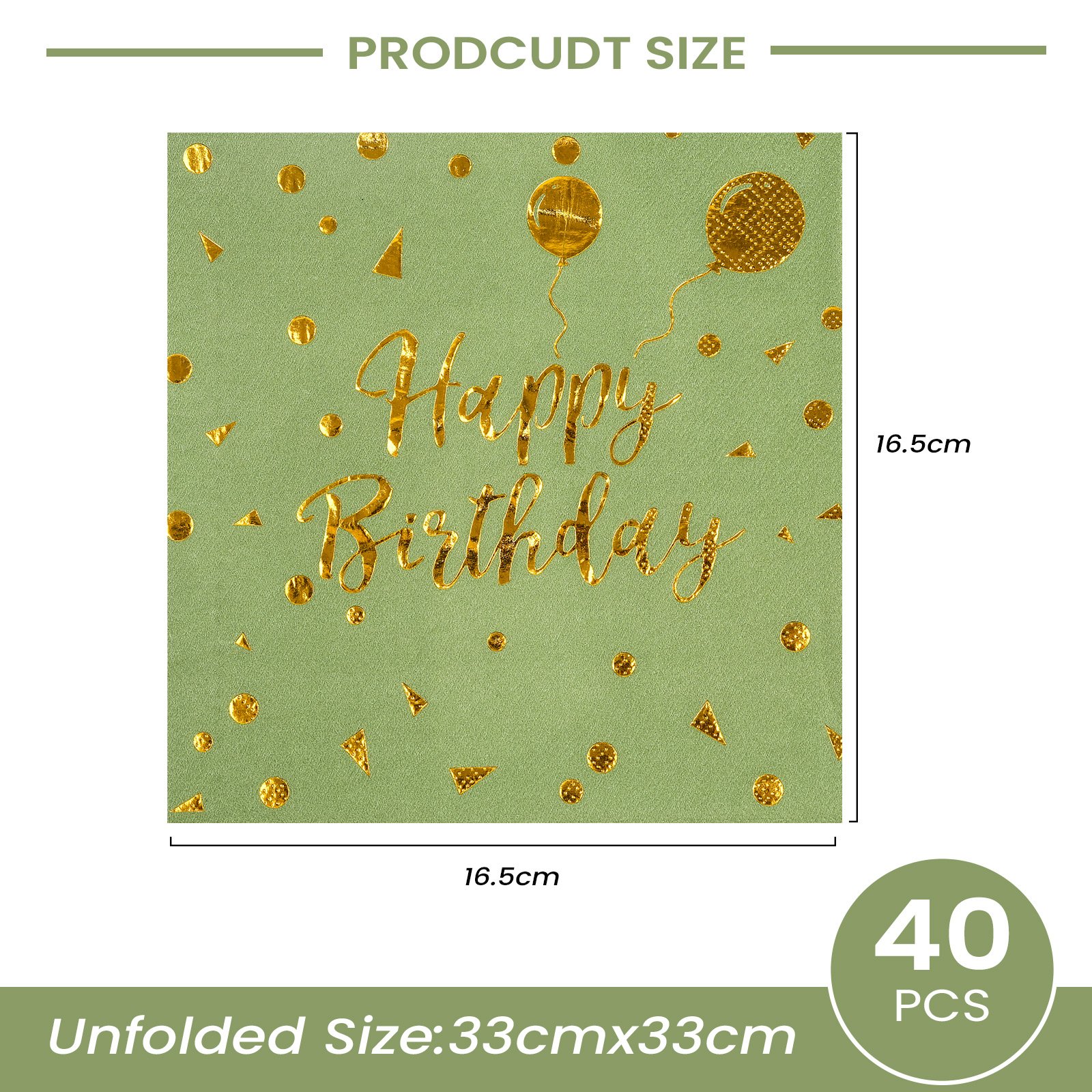 Each pack includes 40 napkins, sized 6.5 × 6.5 inches, featuring a gentle sage green base with subtle birthday-themed illustrations. This color brings sophistication to party tables without being too flashy, making it ideal for minimalist and modern décor themes. Explore all types of wholesale napkins.