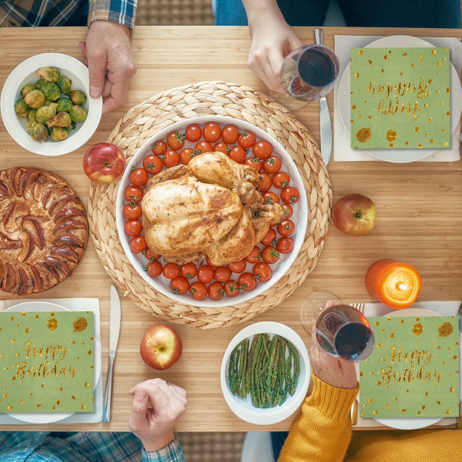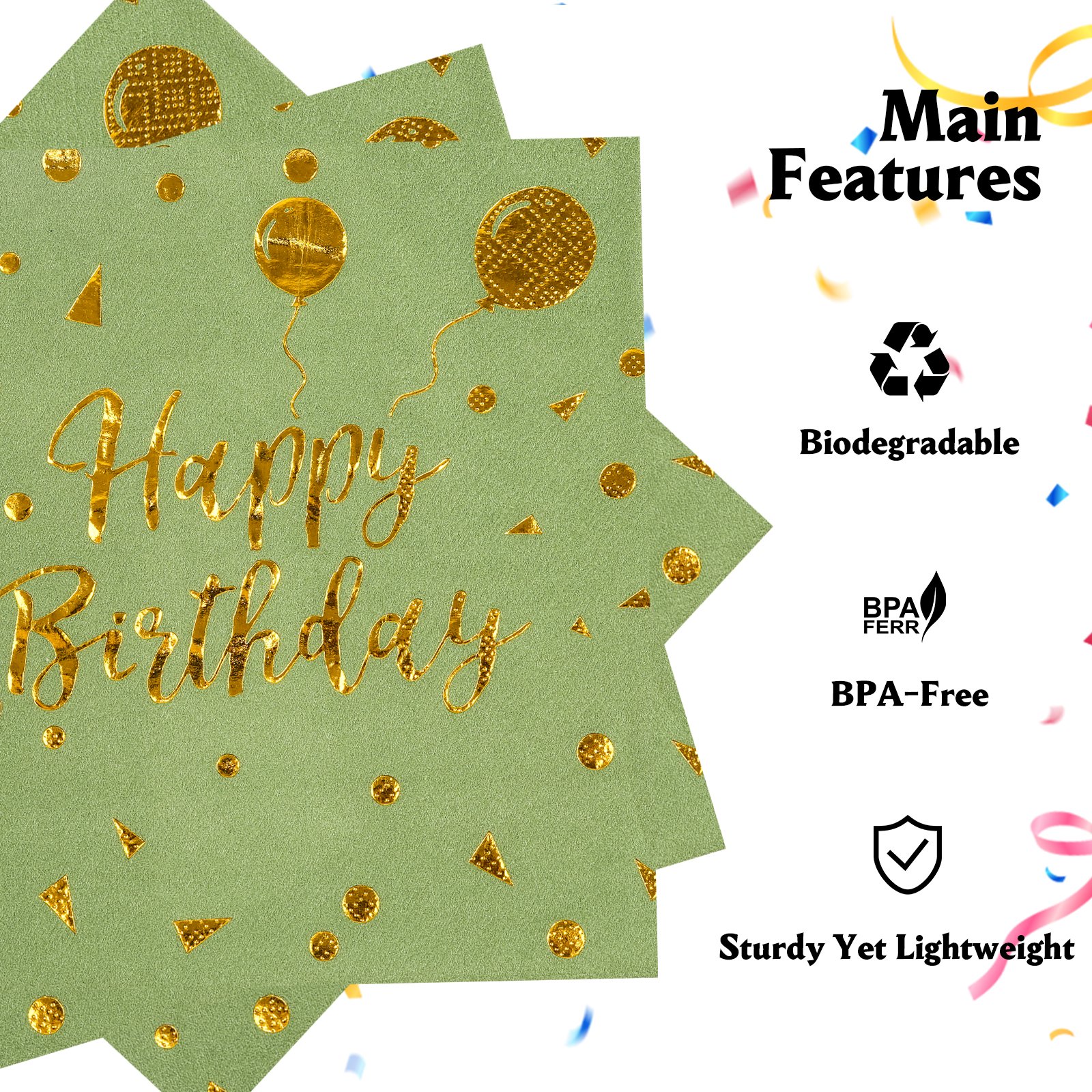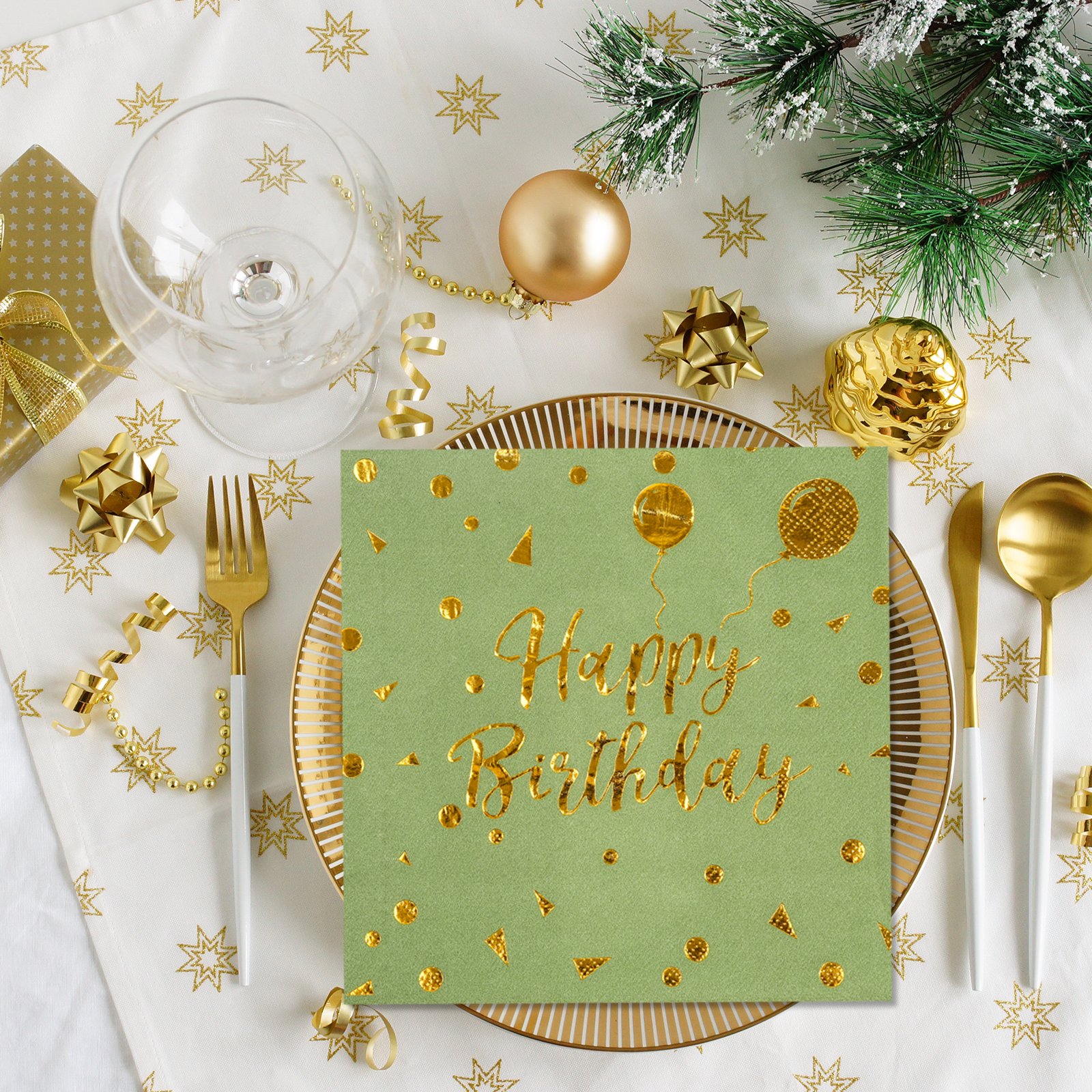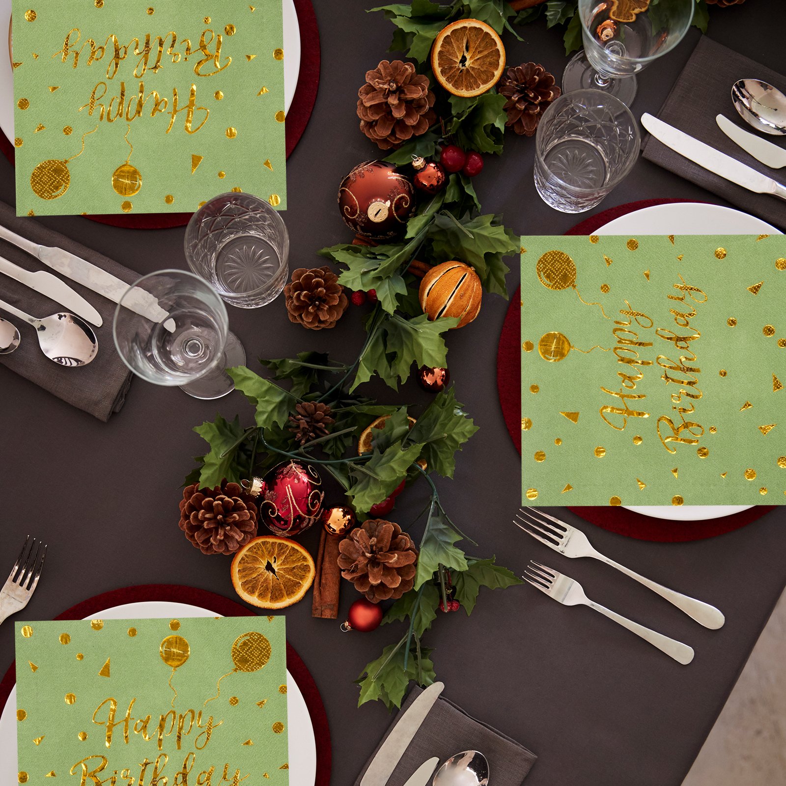 Stylish Birthday Napkins in Soft Sage Green Tone