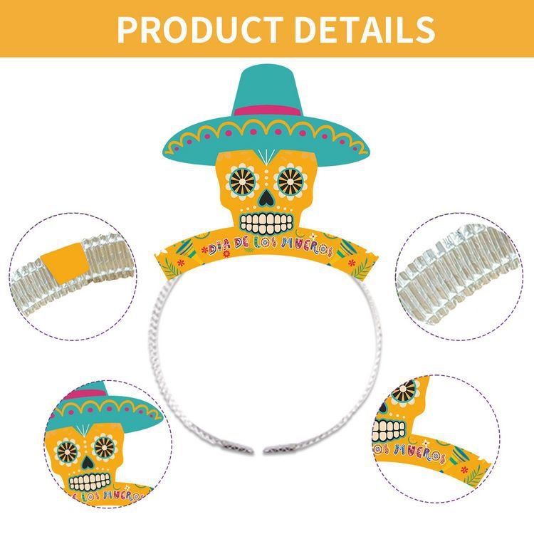 Moreover, the bright colors and detailed patterns make these headbands visually striking in party settings. Because of their festive appearance, they are ideal for parades, themed parties, and cultural events. Therefore, retailers can promote them as essential Day of the Dead costume accessories.