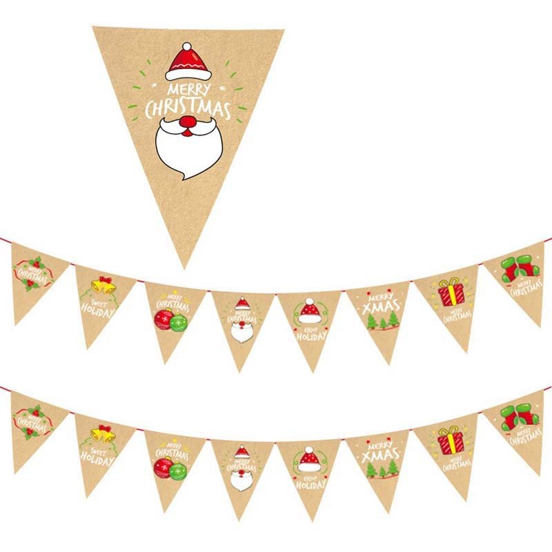 Christmas Banners And Flags are essential seasonal decorations for wholesalers, distributors, and party supply retailers. This set of six Christmas hanging flag banners features “Merry Christmas” text along with classic holiday elements such as Santa Claus and a snowman. In addition, the red and green plaid pattern adds a traditional festive touch.